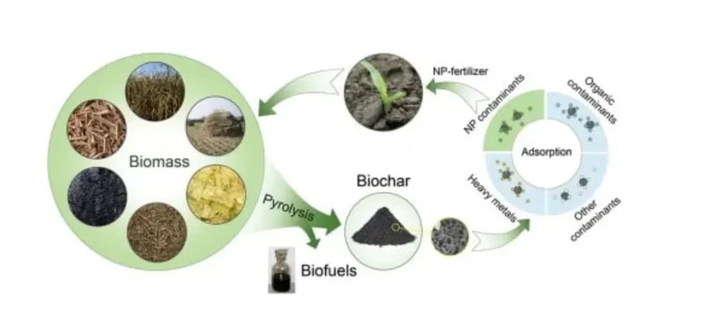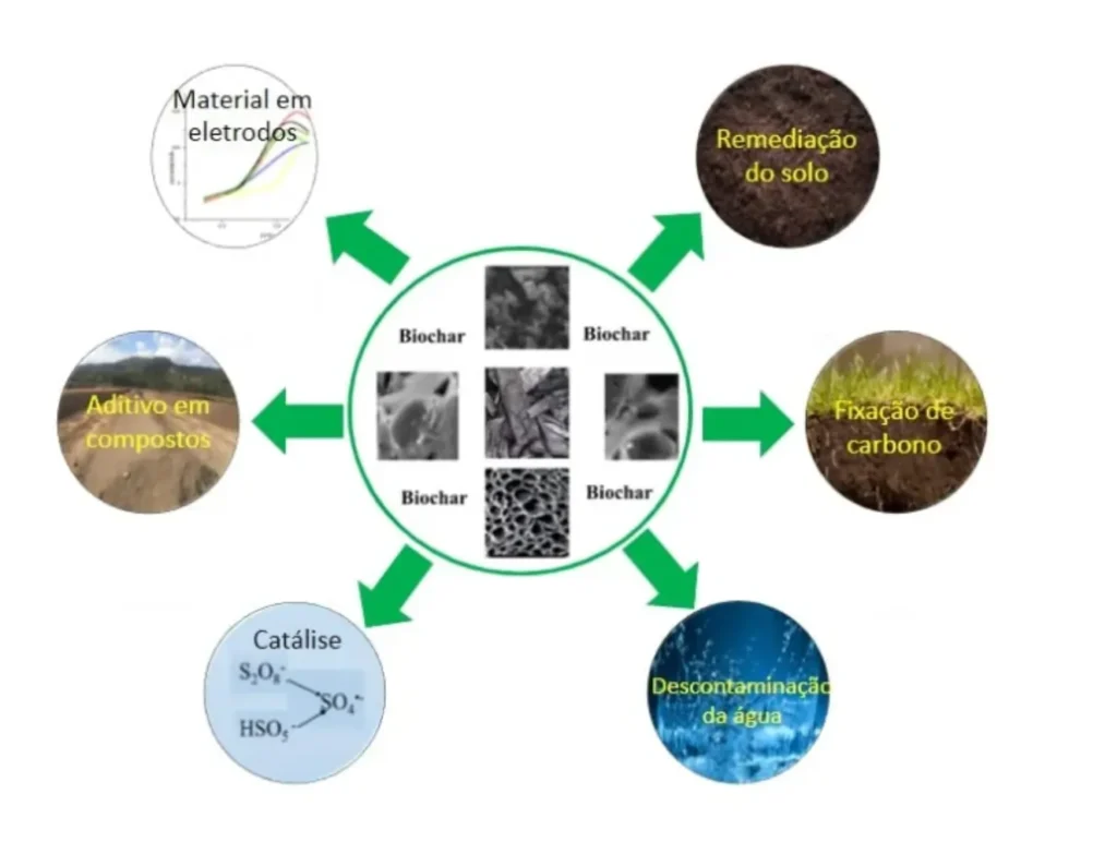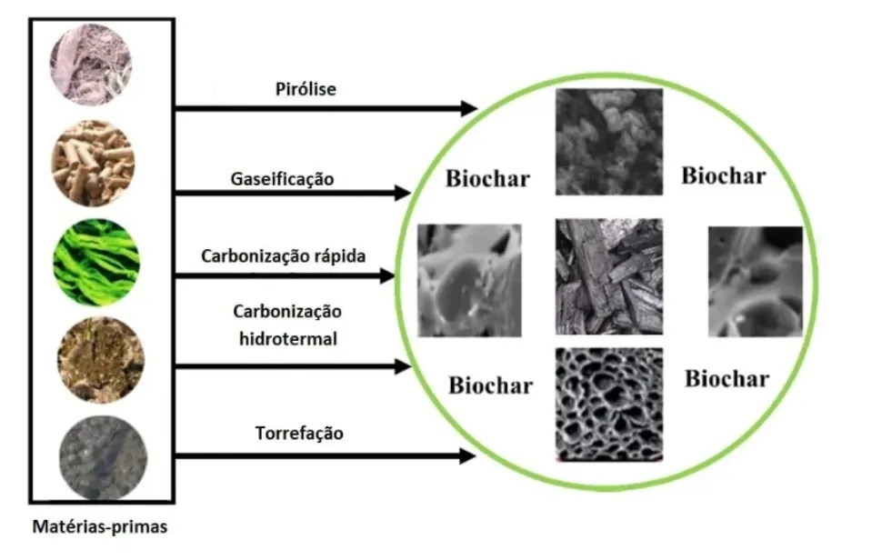 Os resíduos gerados na agricultura e na indústria fornecem matéria-prima com potencial de utilização para a produção de biocarvão. A conversão dessa biomassa residual em biocarvão fornece uma solução para alcançar o sequestro de carbono a longo prazo e também tantos outros efeitos benéficos sobre as propriedades do solo e ambientais. Inicialmente, o biochar foi produzido para aplicações em remediação de solo, fertilizante ou no sequestro de carbono. Em alguns casos, como após a adsorção de contaminantes contendo nitrogênio e fósforo (NP), o biochar pode ser reutilizado como fertilizante, promovendo a melhora do solo e dando continuidade ao seu ciclo de produção e aplicação.