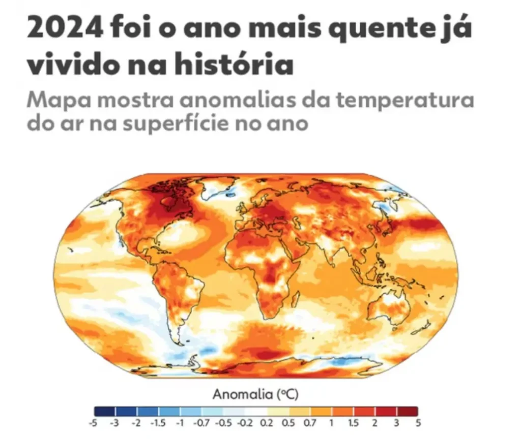 2024 é o primeiro ano da história a ultrapassar marca de 1,5°C de aquecimento