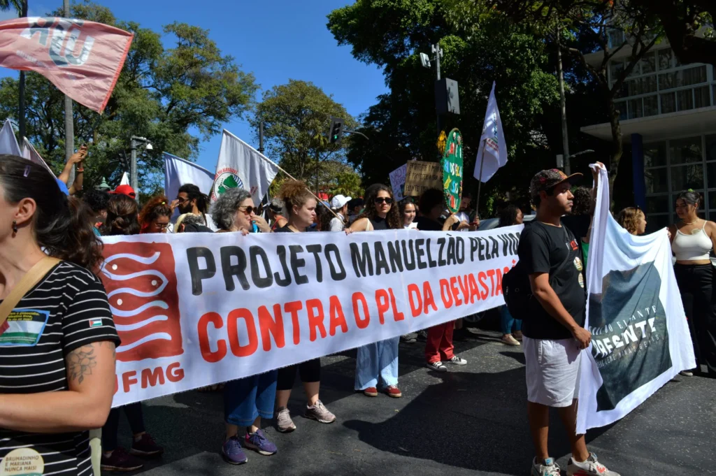 “Apesar dos protestos em todo território nacional contra “O Senado Federal aprovou no dia 21 de maio um projeto de lei que cria a Lei Geral do Licenciamento Ambiental – PL 2.159/2021, O placar foi de 54 votos a favor e 13 votos contrários. Defensores do texto afirmam que as novas regras vão desburocratizar processos para obtenção de licenças ambientais.”