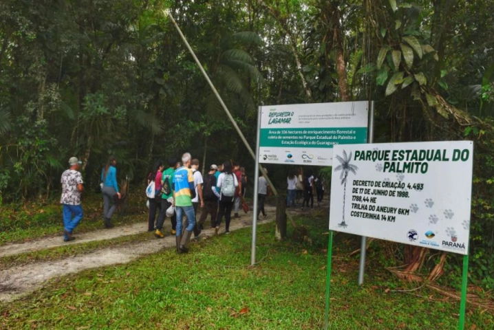 O Parque Estadual do Palmito, em Paranaguá, no Litoral, foi palco nesta quarta-feira (19) de uma nova ação de educação ambiental promovida pelo Instituto Água e Terra (IAT), dentro do programa Paraná Mais Verde. Como forma de colaborar com a regeneração da Unidade de Conservação (UC), 21 voluntários plantaram 150 mudas de cinco espécies nativas da Mata Atlântica: guanandi-mangue, palmito-juçara, ingá-macaco, cedro-rosa e cerejeira-do-mato.